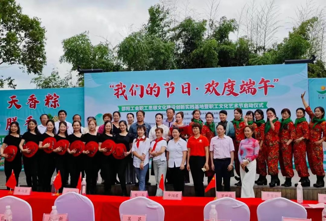 ?非遺文化展風采職工共建譜新篇SHOWYOURGRACE2025年5月29日上午,“我們的節日·歡度端午”邵陽工會職工思想文化建設創新實踐基地暨職工文化藝術節啟動儀式在國家級邵陽經濟技術開發區湖南省天香生物科技有限責任公司隆